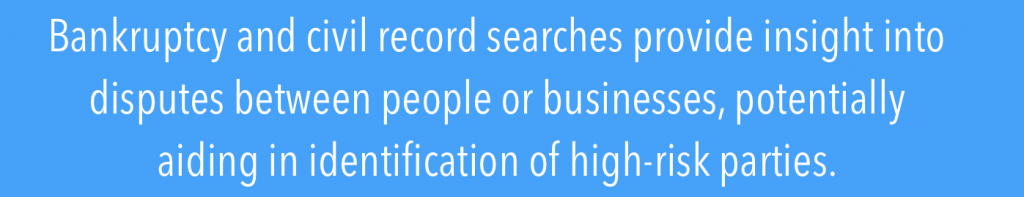 Whenever you begin a business relationship, it’s important to know if the people running the business are fiscally responsible. This is especially true with cryptocurrency startups or any startup for that matter. If you will be investing money into a company or establishing any sort of credit terms with the company, it will help you make an informed decision to know if the principals have ever filed bankruptcy or been sued for defaulting on a credit obligation.